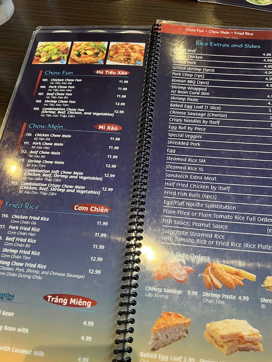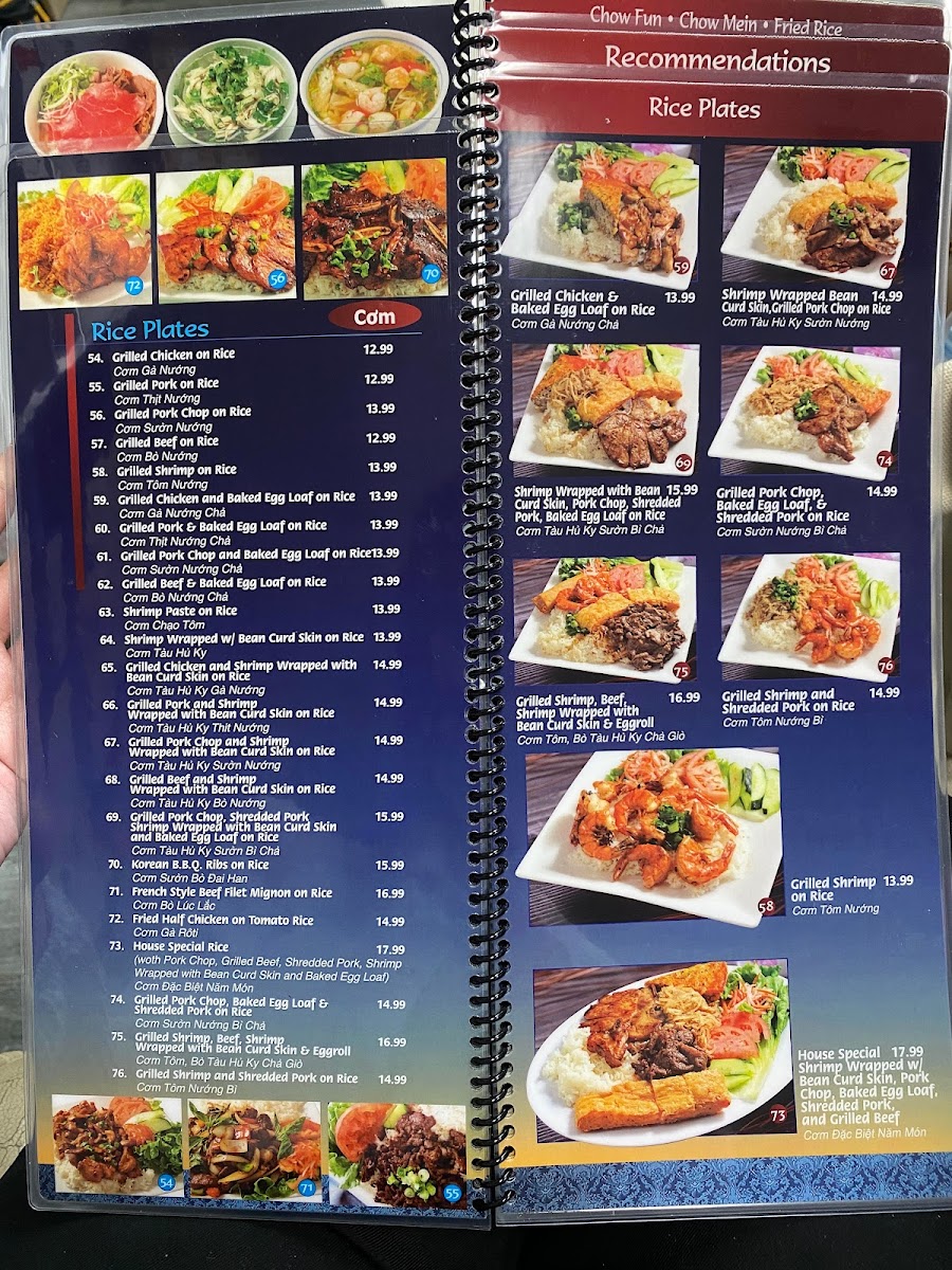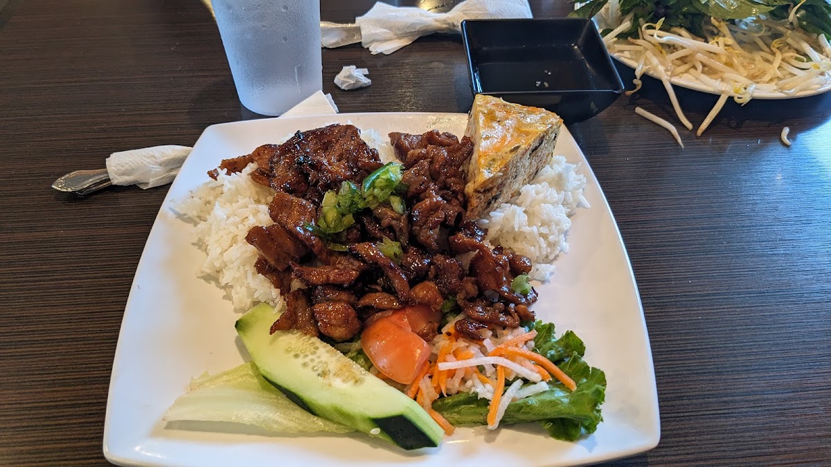 Been here a few times now and decided to give them a proper review. It's been since before the pandemic started and came her last night. I ordered #69 Rice plate which comes with shrimp paste in bean curd sheet fried up real crispy, baked egg, bbq-pork chop over rice, and served with a sweet fish sauce which makes it just the right enhancement for flavor. Wifey got their brisket pho & our daughter chowfun with different kinds of meats. Everything was delicious and a close comparison to Pho Fula in La Habra. The place is clean, organized, have great service that's friendly and makes you feel at home. The chef came out and made sure everything was great with a sense of humor. We'll be back to try other things on their menu.