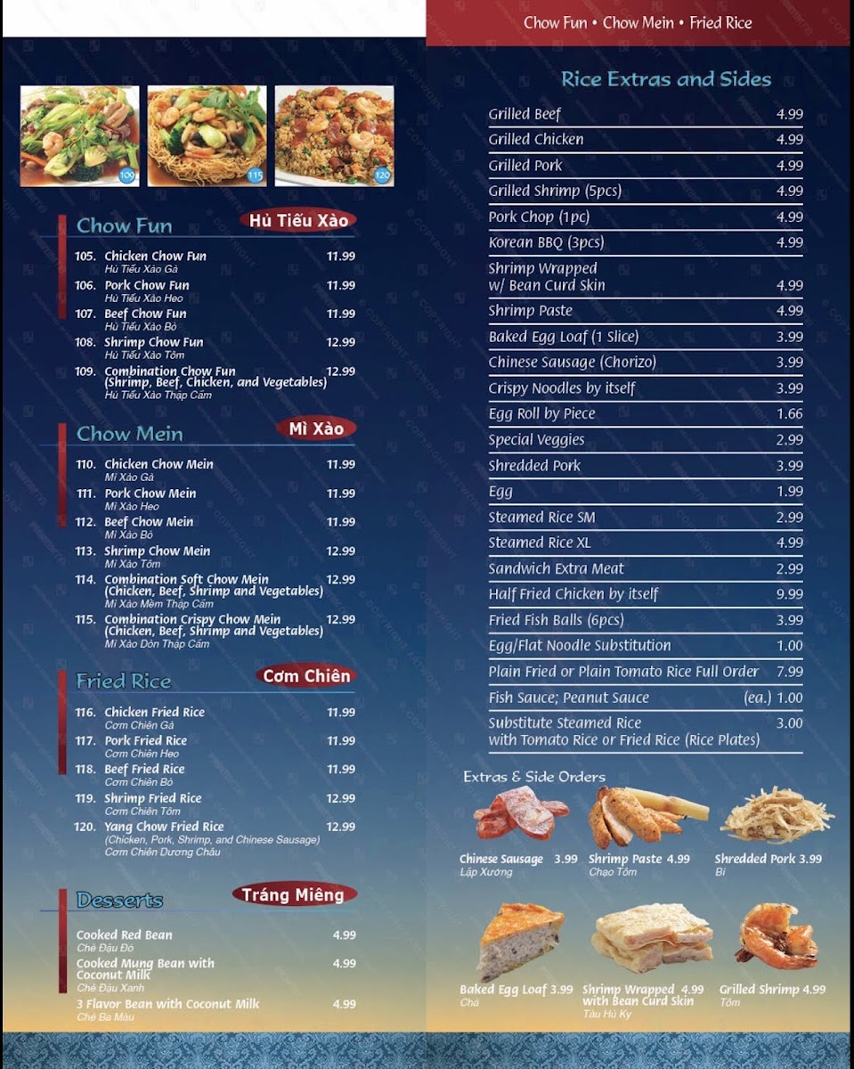 - Chow Fun and Fried Rice: For those looking for something unique, their Yang Chow Fried Rice and Combination Chow Fun come highly recommended, ensuring a savory stir-fried experience at $12.99 each.