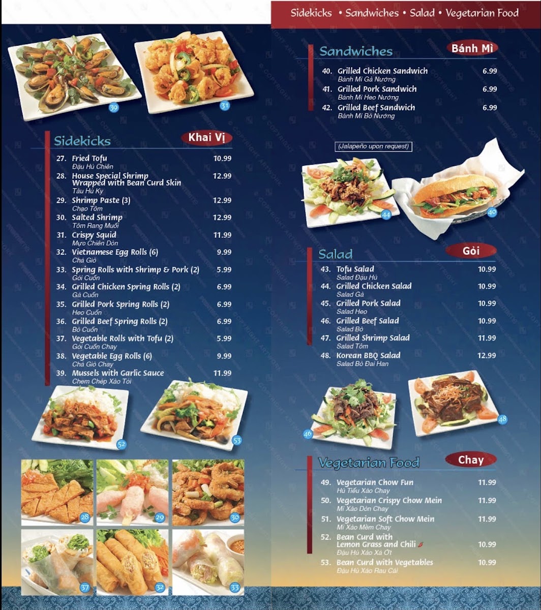 The menu at Blue Lotus Vietnamese Cuisine is extensive and caters to a variety of tastes. Here are some highlights: